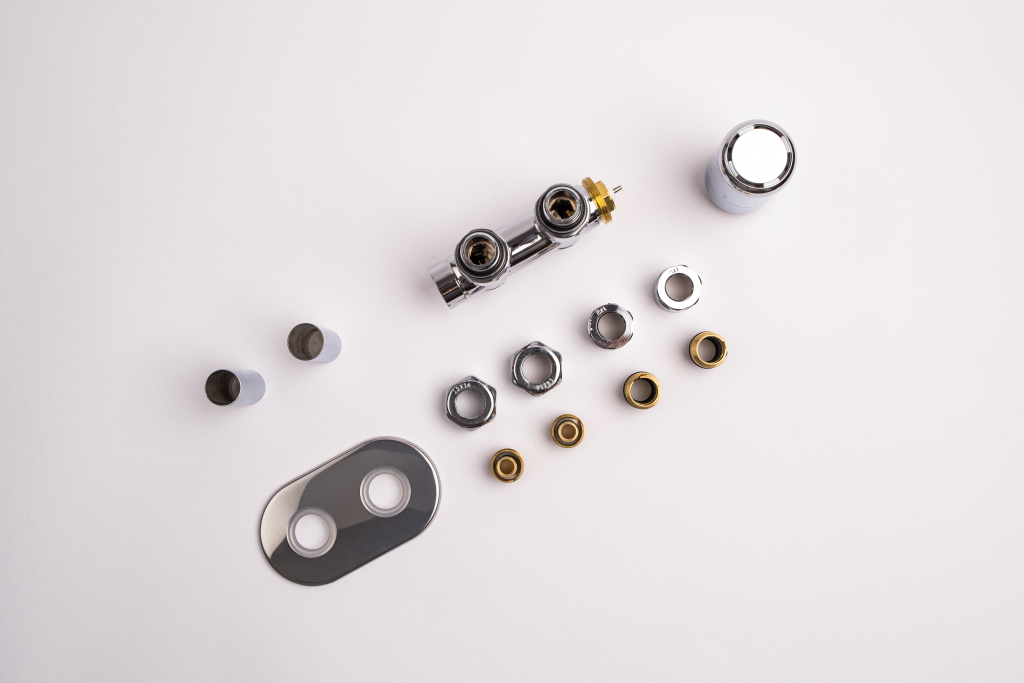 Kompletní sada obsahuje kromě ventilu také krycí rozety a svěrné šroubení pro připojení na měděné potrubí 15 mm a Alupex 16 mm.