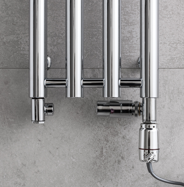Zestaw INTER dedykowany jest do grzejników z pionowymi kolektorami . Grzałkę elektryczną można zamontować po dowolnej stronie grzejnika bezpośrednio przez zawór. W zależności od położenia głowicy termostatycznej zestaw może być prawo bądź lewostronny. Należy zamówić złączki zaciskowe Inter z gwintem M22x1,5.
