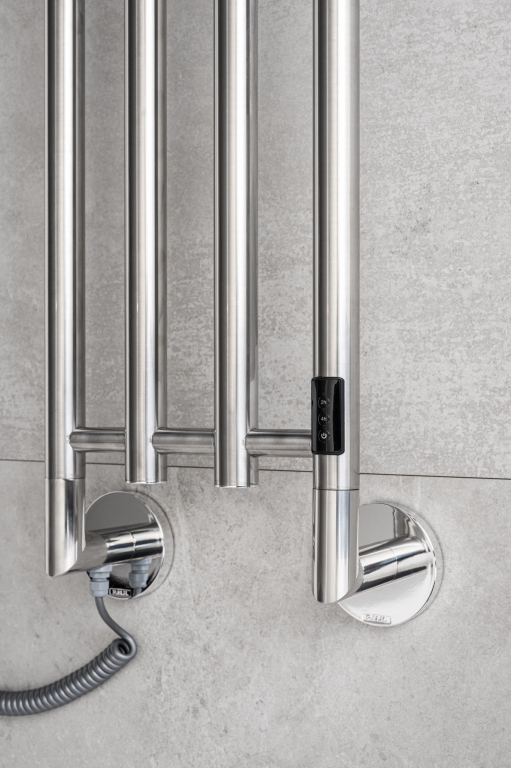 Elektrický sušiak uterákov s nízkou spotrebou energie je dodávaný vo vyhotovení leštená nerez alebo čierna.